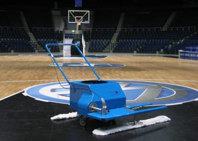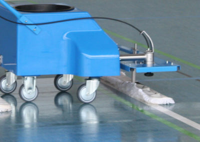 Mit diesem einfach zu bedienenden Gerät läßt sich ein Sportboden täglich mit wenig Zeitaufwand reinigen (25-35 Minuten für 1200 m2 ) und pflegen. Dabei wird wenig Feuchtigkeit eingesetzt, so dass auch wenig Chemiezusätze nötig sind und alle Sportbodenarten – auch wasserempfindliche – optimal gereinigt und gepflegt werden können.